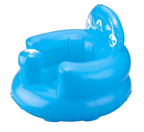 使えます。 子供が6ヶ月の時に購入しました。膨らます際は、器具いらずで、真ん中の円柱状の部分をシュコシュコ押すだけなので、簡単でした。お風呂でちょっと待たせたりする時、座らせておくのにとても便利です。子供を抱き上げた時に、チェアがくっついて来ないよう、足で踏むスペースがもうけられていることに感心しました。おもちゃが付いている折りたたみタイプのものなどもありますが、軽くて、シンプルなものが欲しくて選びました。おもちゃはお風呂用のものを別途持たせています。持ち運びができるし、時期が終われば畳んでしまえるのも良いと思います。